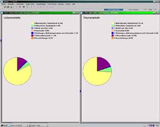 Wirkungsbilanz nach Kriterien und Phase Materialanteile Volumenanteile Versauerungspotential Wirkungsbilanz, Treibhauspotential